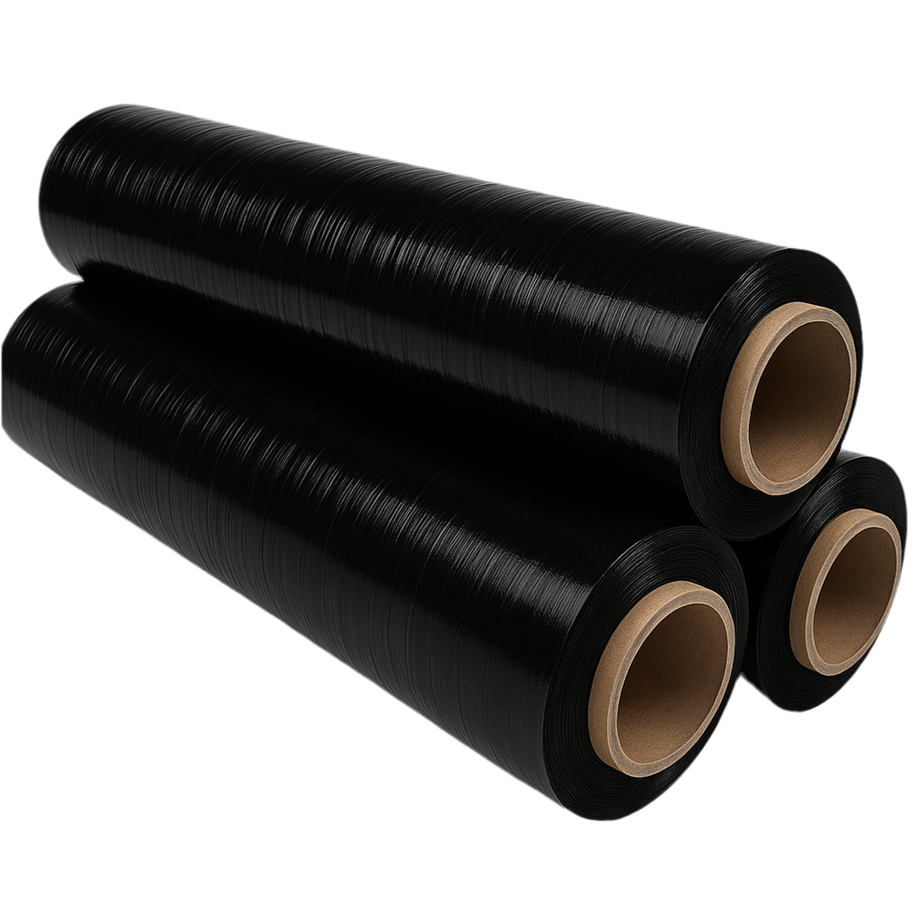 Schwarze Stretchfolie B 500 mm – 300 lfm – 3,0 kg/Rolle Diese schwarze Premium-Stretchfolie bietet nicht nur optimalen Schutz, sondern auch perfekte Blickdichte für Ihre Waren. Ideal, wenn Produkte vor neugierigen Blicken oder Sonneneinstrahlung geschützt werden sollen. Die Folie fixiert Paletten zuverlässig und schützt Ihre Güter während Lagerung und Transport vor Staub, Schmutz und Feuchtigkeit.